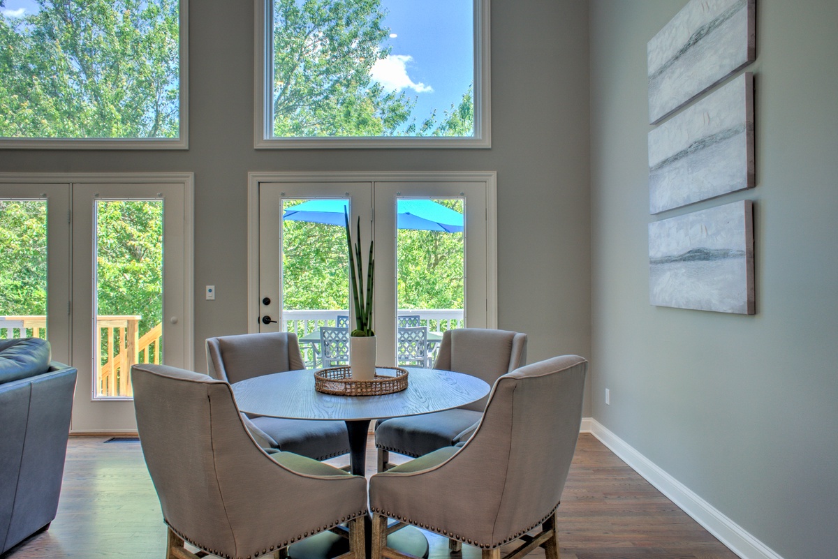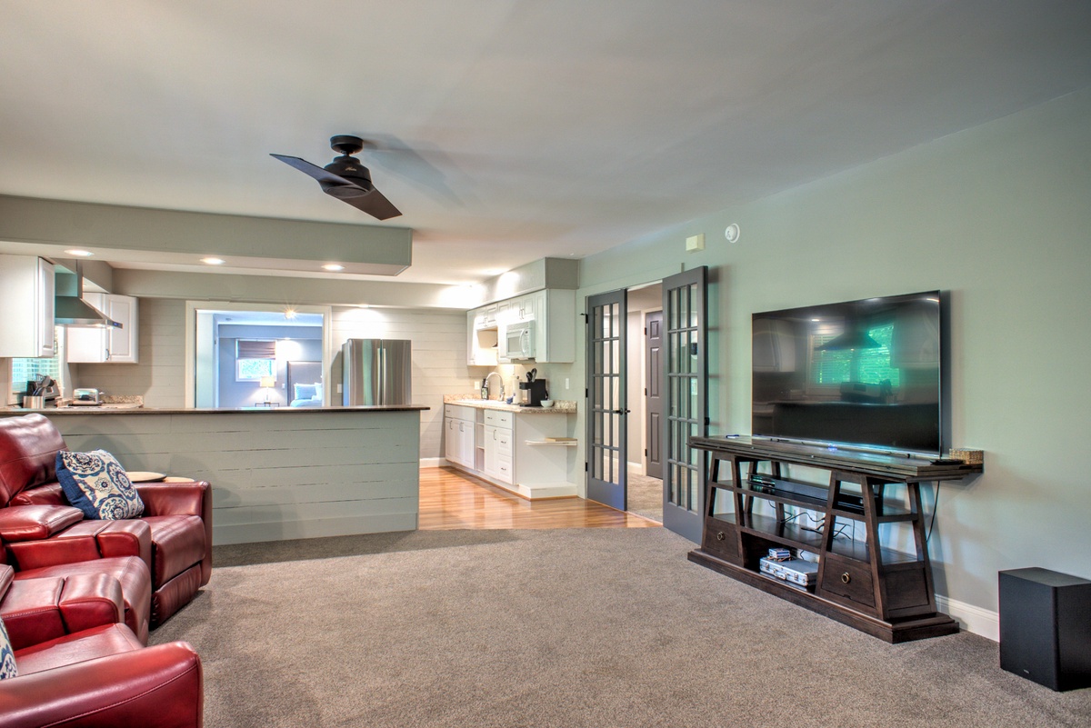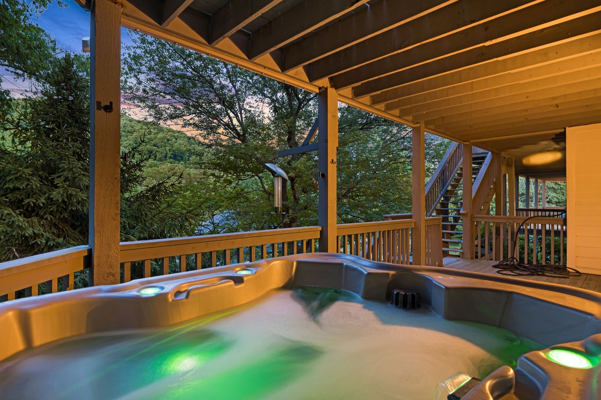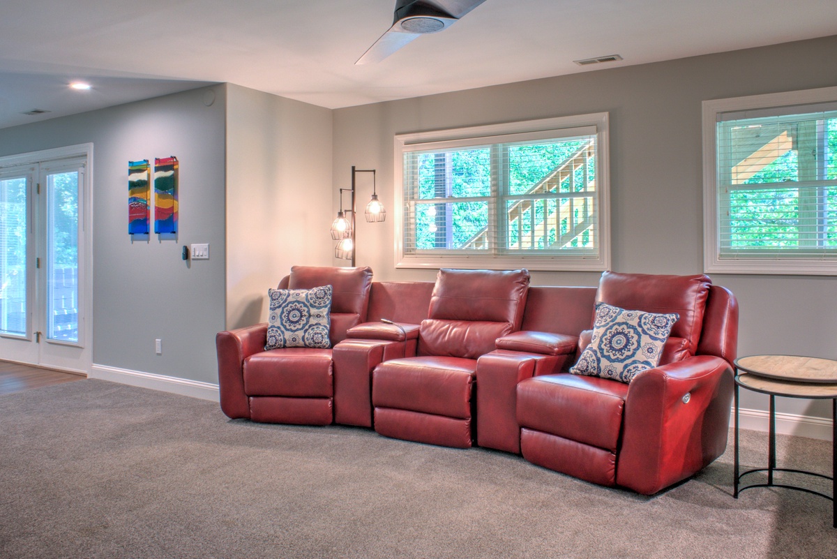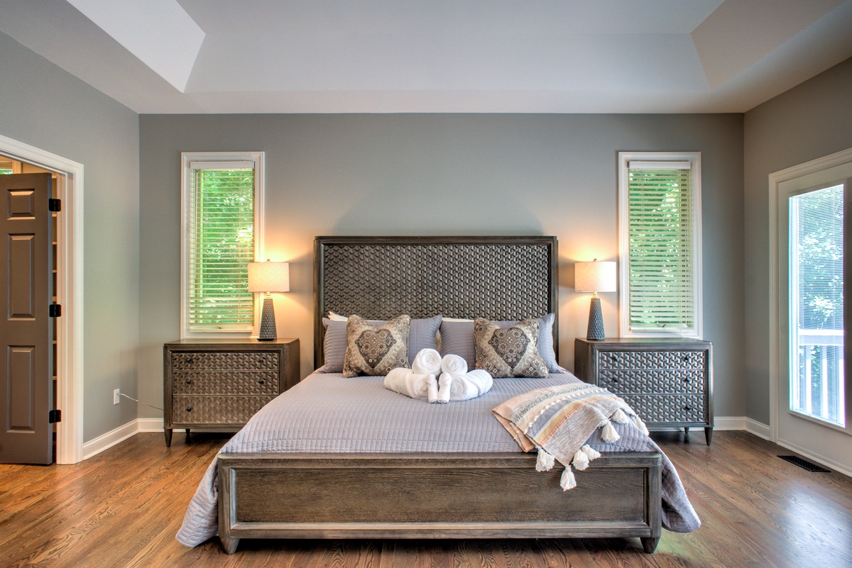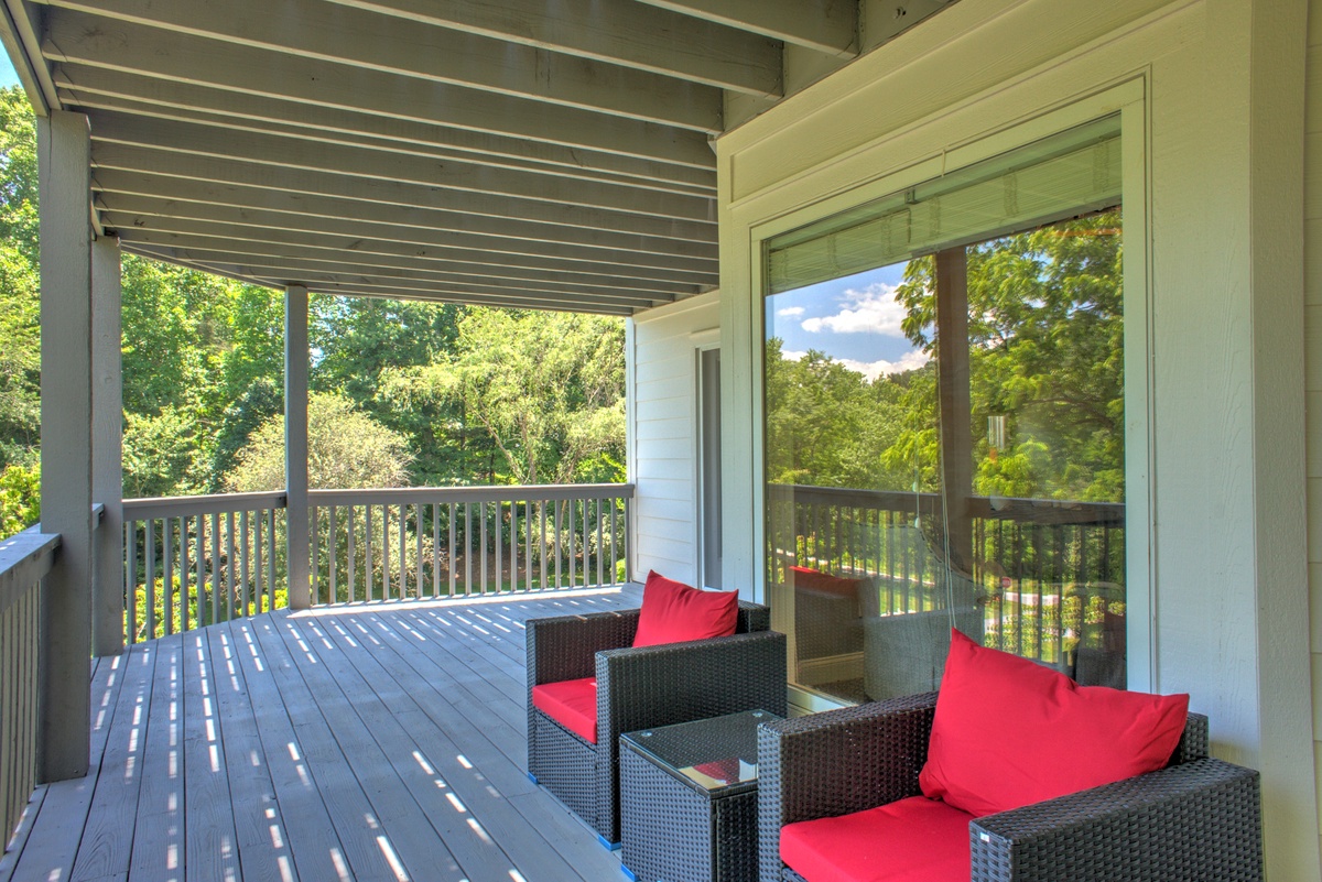 Everyone will appreciate the peacefulness of their own private quarters. Retire to the owner-on-main suite with its gorgeous bath featuring a huge walk-in shower and a deep soaking tub. The lower level offers a second main bedroom with a private walk-out porch and a cedar-lined closet. The whole family will catch some well-deserved "zzz's" with three beautifully decorated bedrooms on the upper level. Bonus: there's a large TV in all five bedrooms!