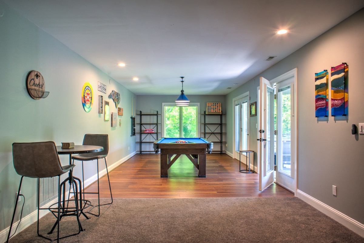 Perfect for groups seeking a posh vacation home in a quiet, easy-access, suburban setting that's close to everything, Blue Sky Manor is ideal for family reunions and corporate retreats. The oversized triple-car garage provides shelter for your vehicles. Blue Sky Manor sets a standard for vacation rentals in the Asheville area, with high-end amenities and convenience that's downright unbeatable!