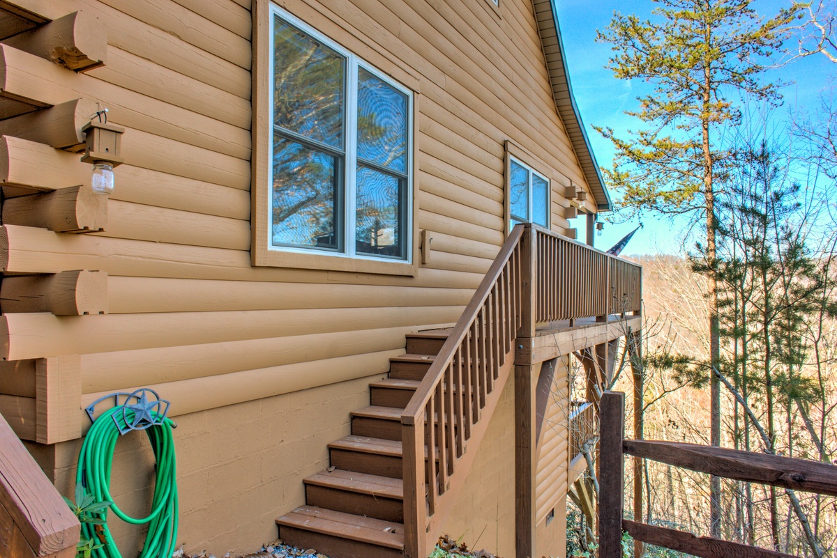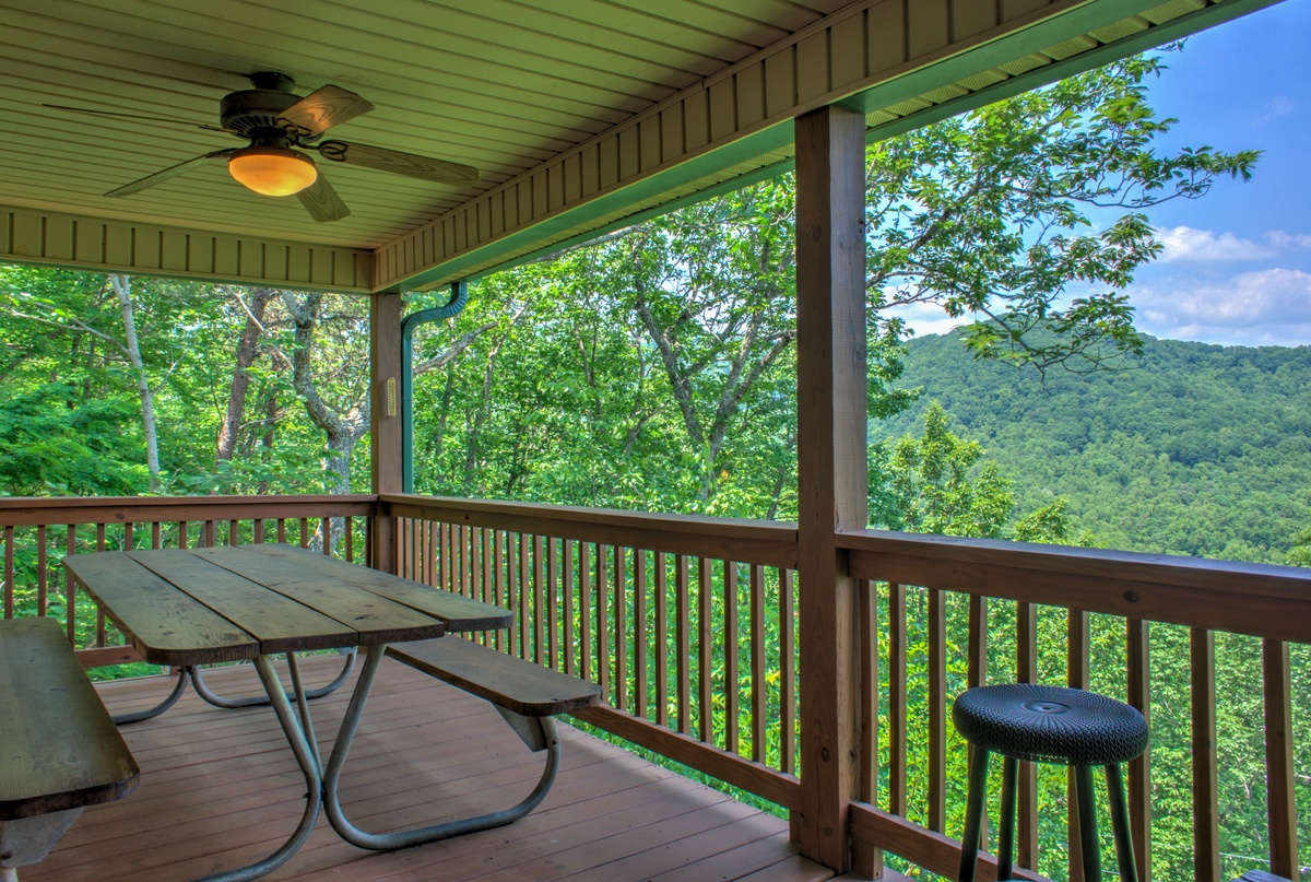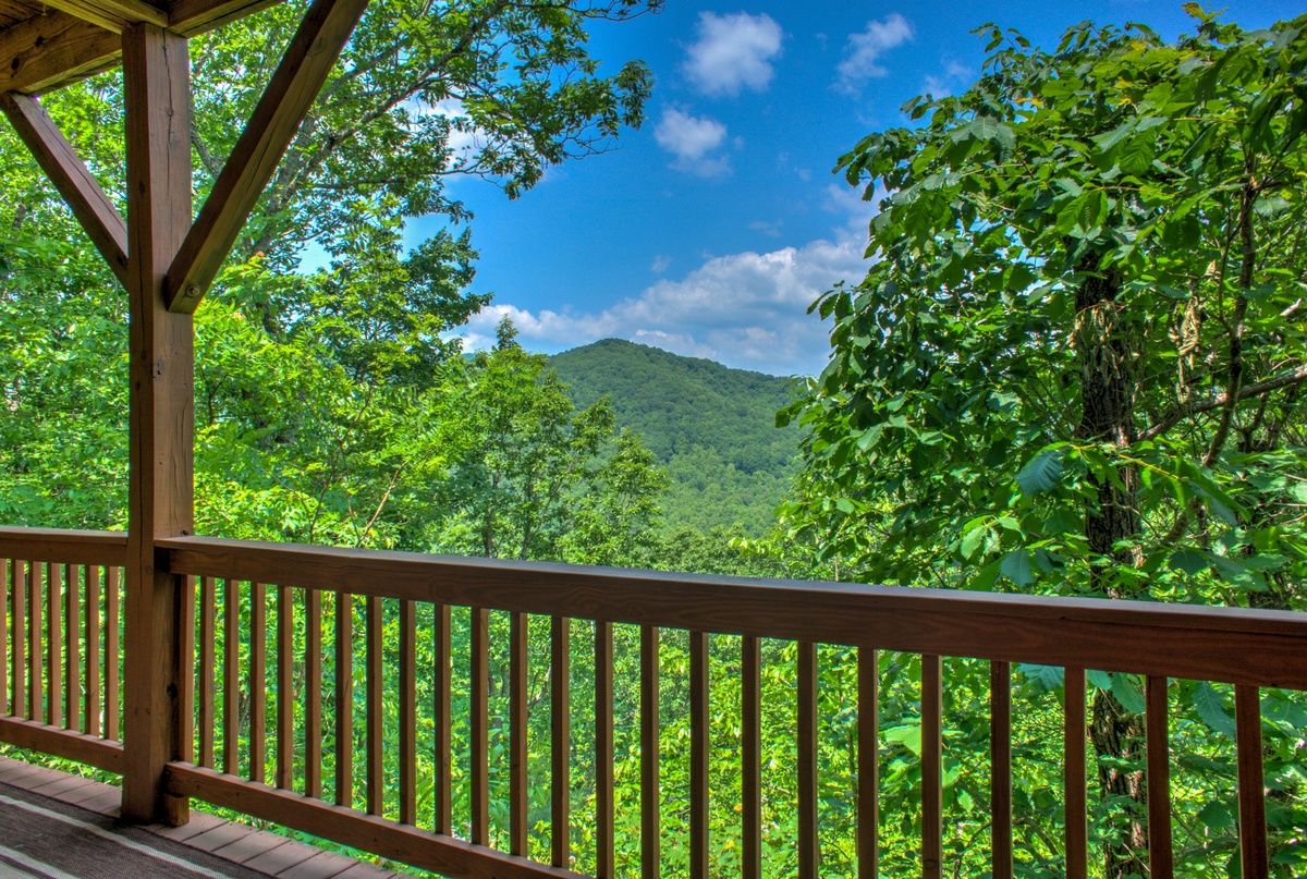 Spacious Log Cabin in a Beautiful Mountain Setting! Drive to the summit of Mount Pisgah on the Blue Ridge Parkway from Candyland Cabin, offering long range mountain views from the covered front porch and three levels of comfortable living space.