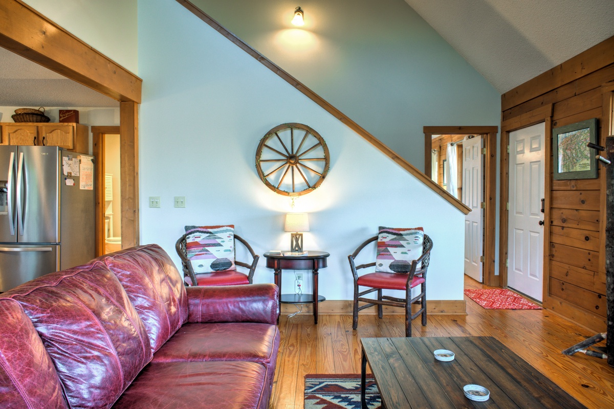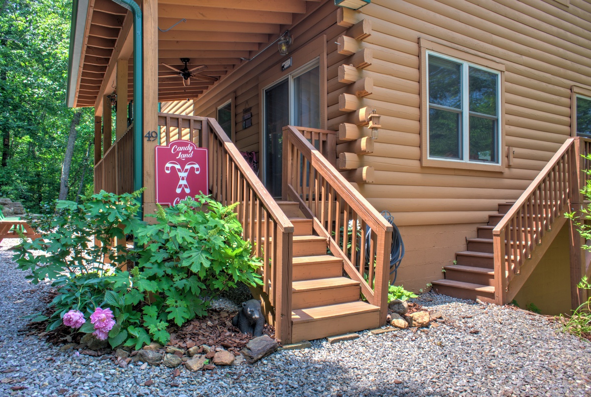 As the last house on Candyland Court, this charming cabin offers plenty of privacy and a treetop vantage. Featuring an open living floor plan that fills the home with sunlight, Candyland Cabin has been newly renovated, including hardwood flooring, stylish furnishings, and a fully equipped kitchen. Serve meals at the family table, or dine out on the front porch and enjoy the mountain views. Rocking chairs and a swinging bench on the lower level deck invite you to savor the highland afternoons with a good book.