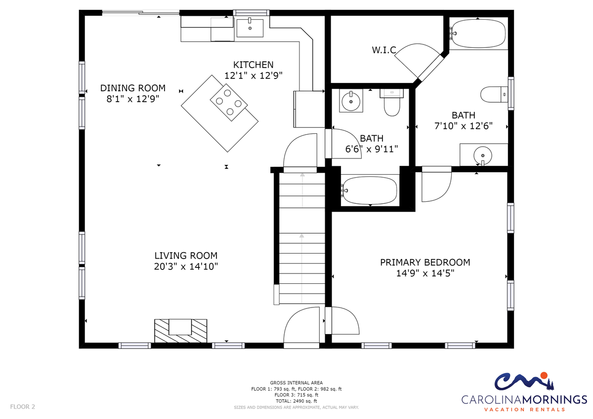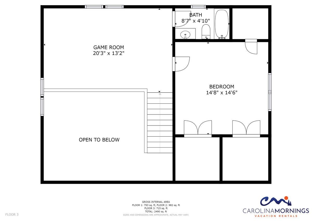 • Upper Level: Bedroom Two - 1 Queen Bed; Full Bath