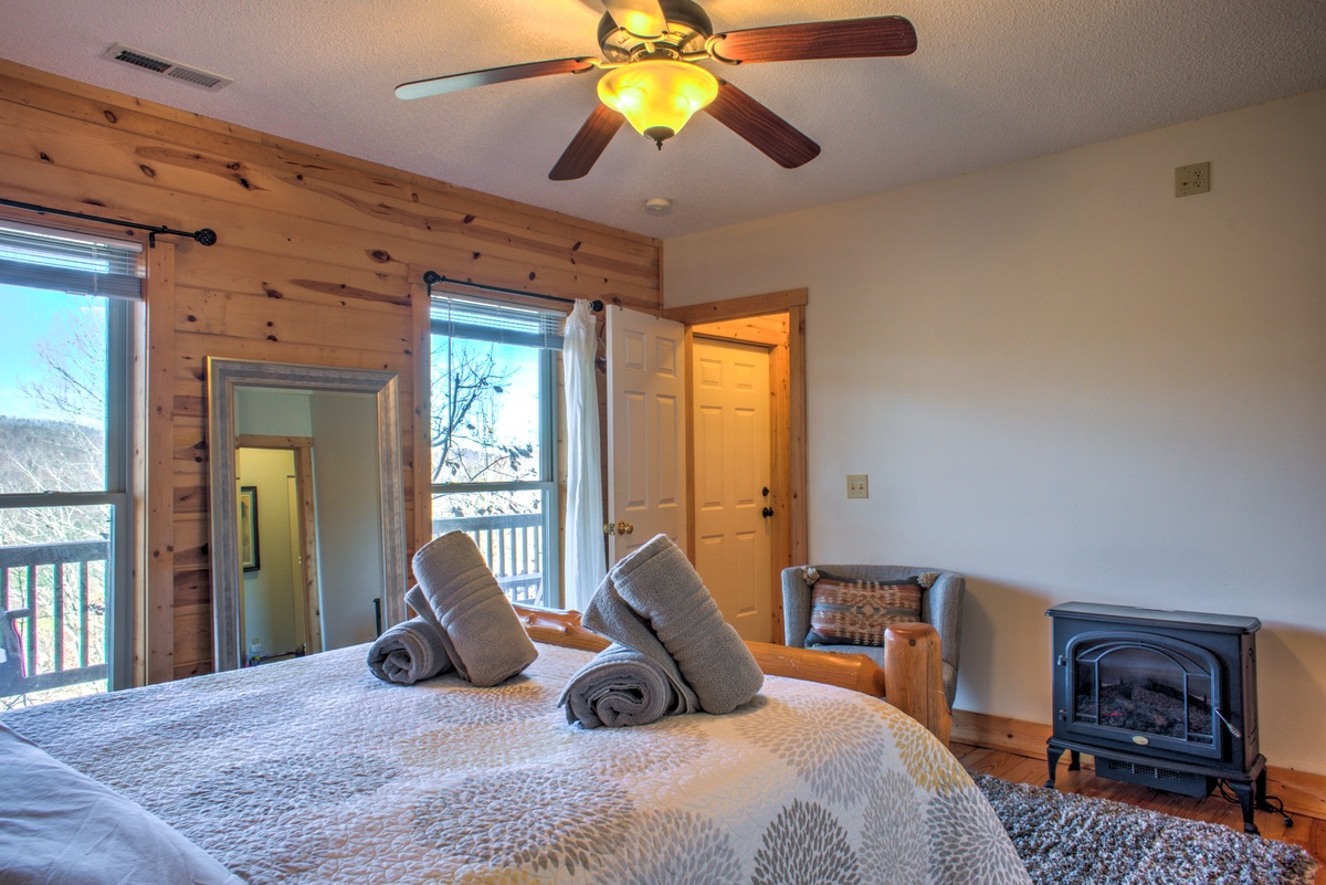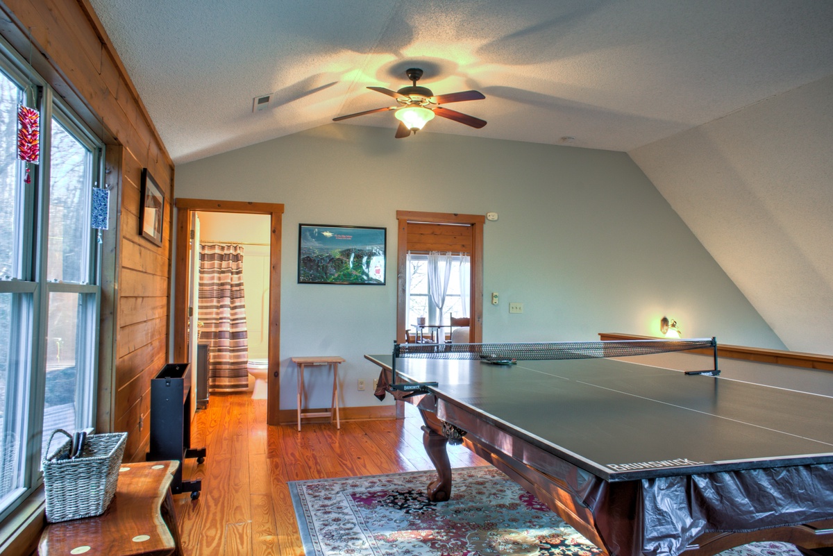 For hours of fun, the upper level recreation area includes a game table that doubles for playing pool and ping-pong. Looking for a good night's sleep? Everyone appreciates the spacious layout at Candyland Cabin, with a queen bedroom located on each floor. For added comfort, two bedrooms include an electric fireplace space heater. The lower level is a "media room" with a large TV and Blu Ray DVD player. How sweet it is... Let the Blue Ridge adventures begin at Candyland Cabin!