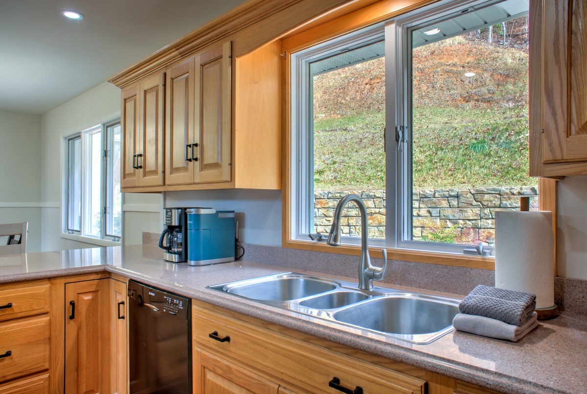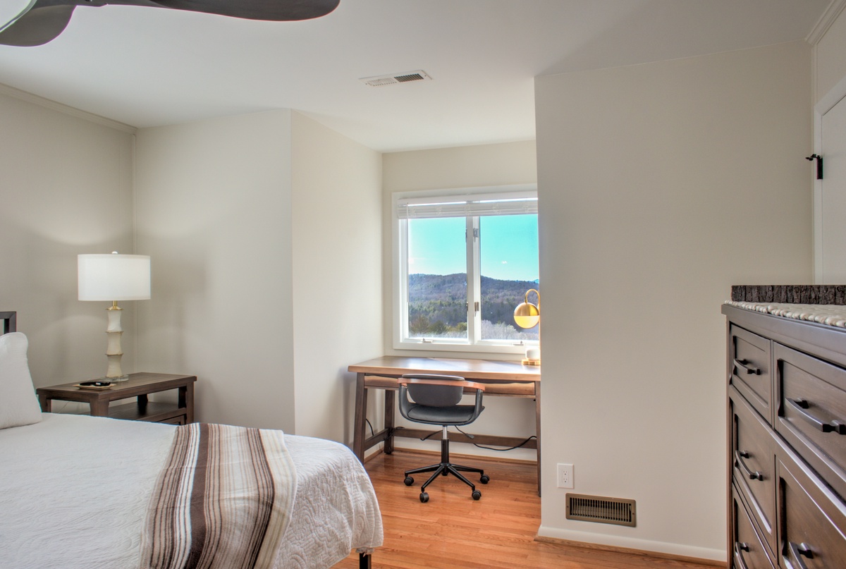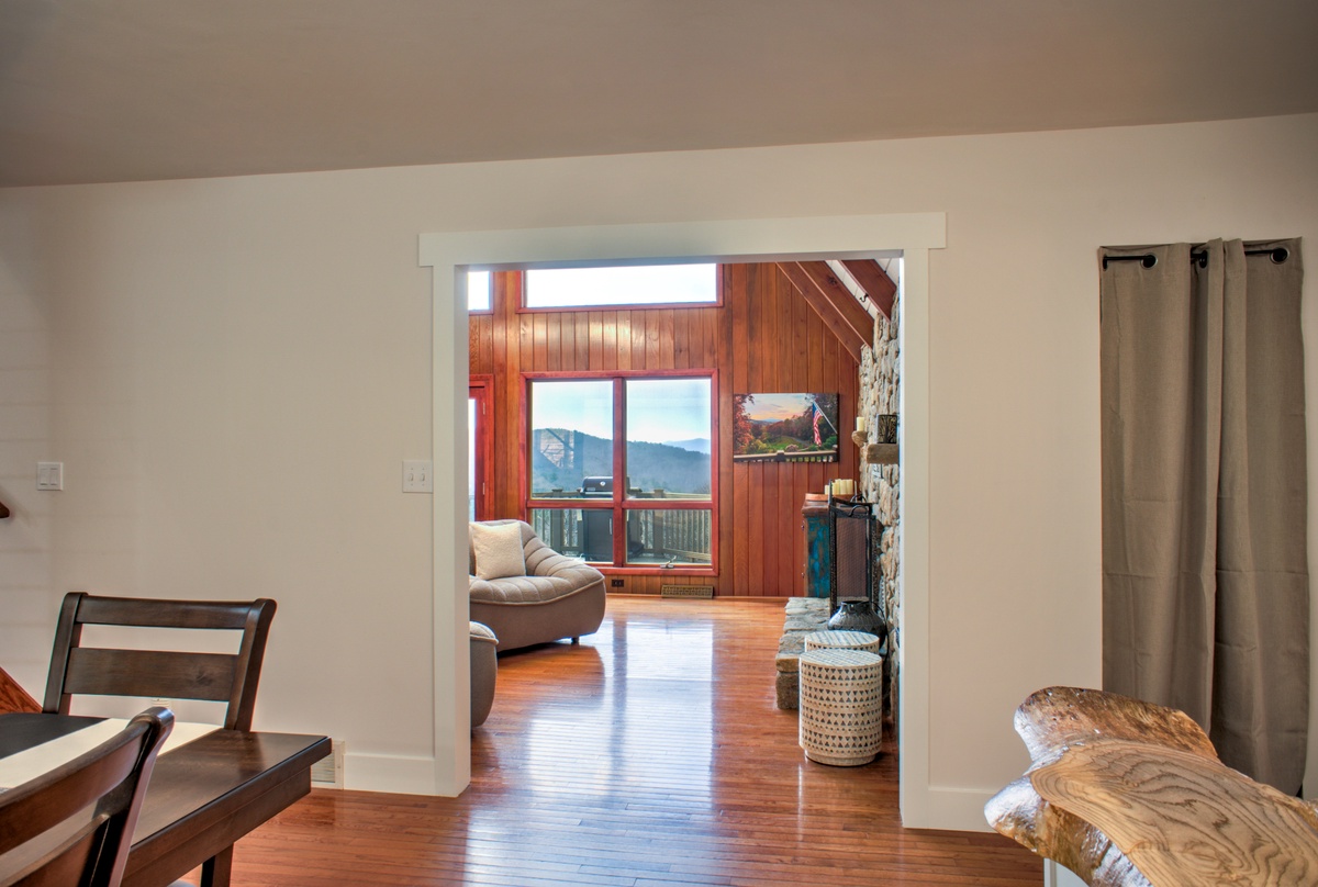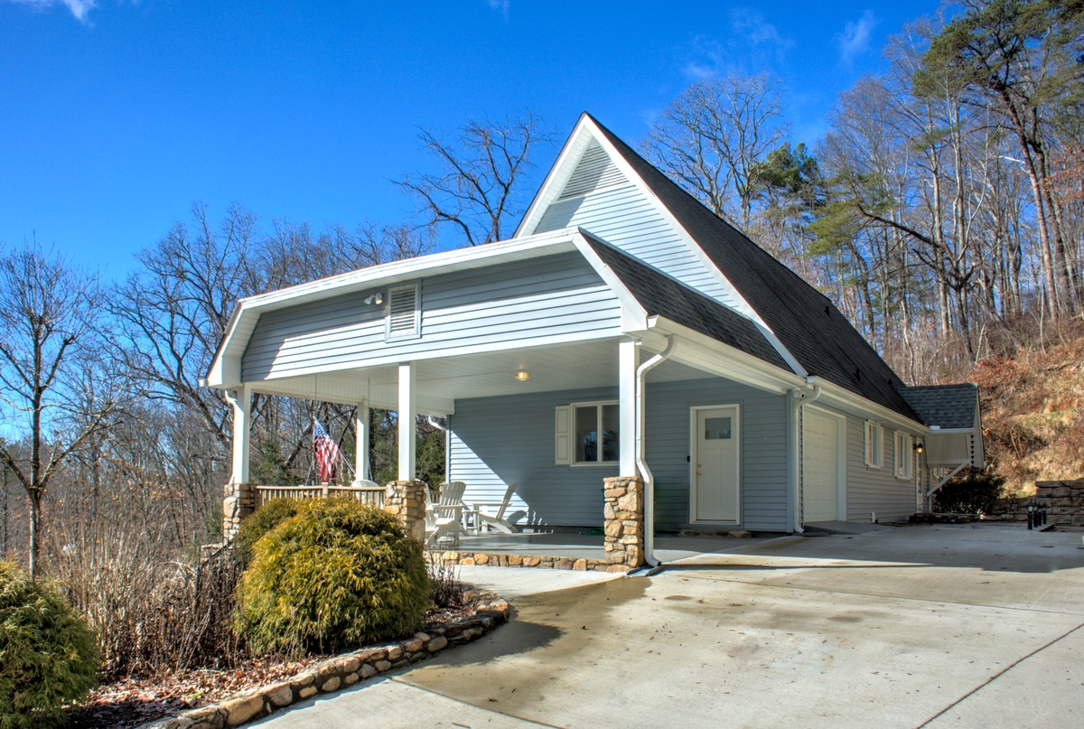 Peak A View is your own private estate only 10 minutes from downtown Asheville! Boasting year-round, long-range mountain views worthy of its clever name, this three-story gem sits atop a ridge in East Asheville and offers a convenient location and a paved driveway for easy access. The cozy living area with soaring ceilings features a wrap-around couch, huge picture windows to frame the mountains, and a gas fireplace to take the chill off from the mountain weather. Sit a while on the deck and watch the sunset, then head into town to check out Asheville's lively entertainment scene. The fully-equipped chef’s kitchen makes cooking for your group a breeze, along with a BBQ grill and a fantastic view of the main-level deck. Work at home with desk space available in three separate areas. A rec room on the lower level offers space to spread out. There are games to pass the time, including foosball, a golf putter mat, and arcade-style PacMan. Fitness buffs will love Peak A View - the well-equipped home gym will truly elevate your workout time. Even though you feel like a million miles away from all of your worries, this mountain home provides a perfect location for your mountain adventures. Your mountain dream vacation comes true at Peak A View!