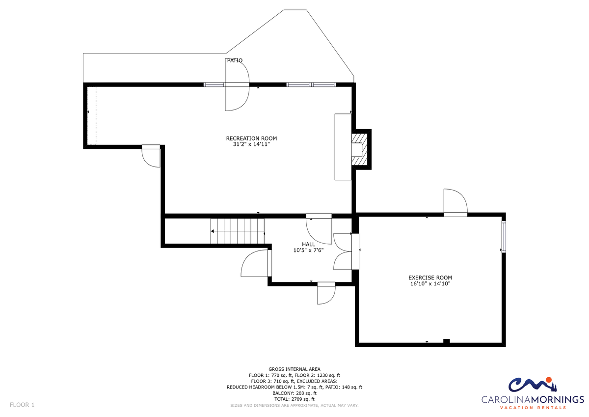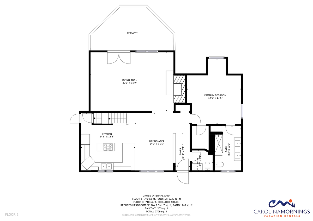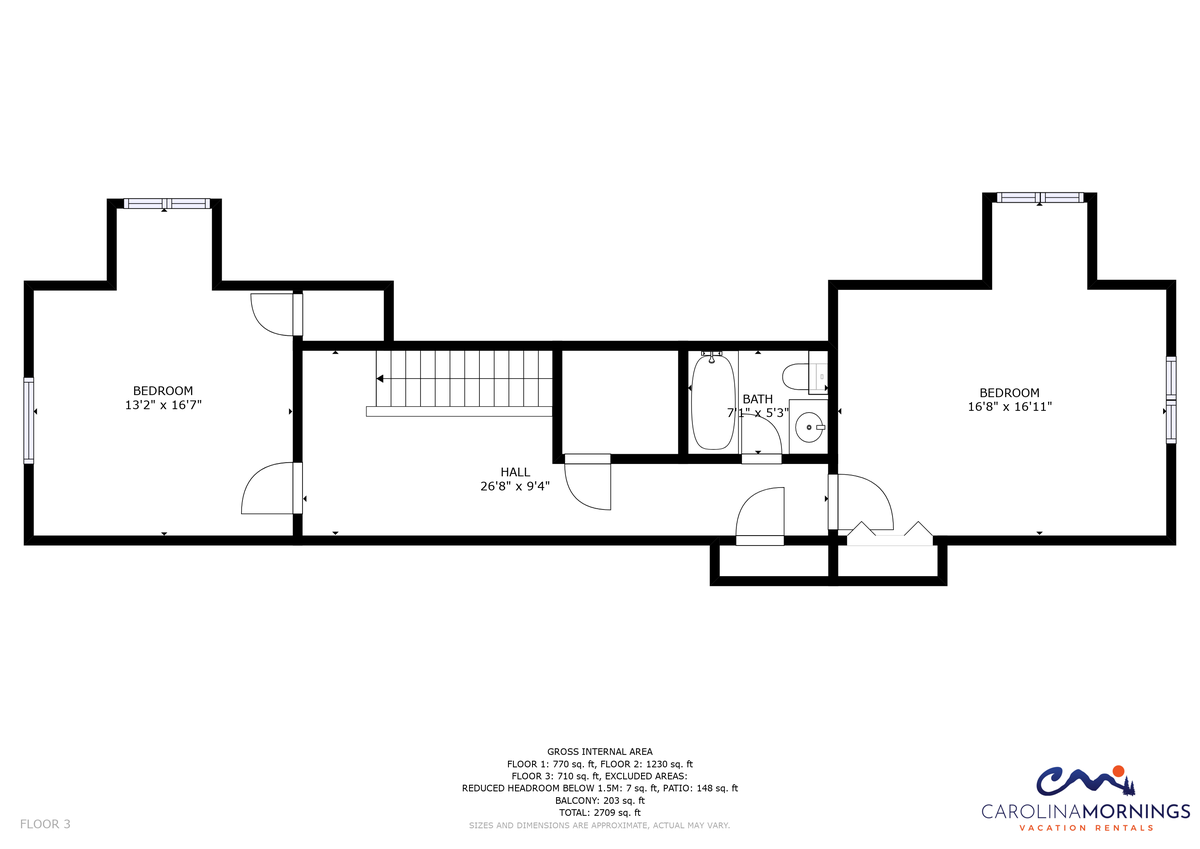 • Upper Level: Bedroom Two - King Bed; Shared Full Bath; Bedroom Three - King Bed