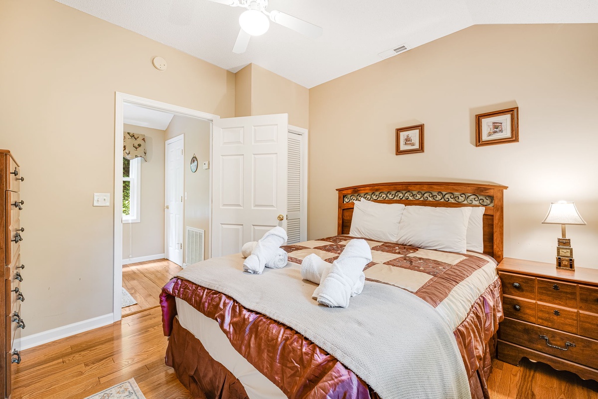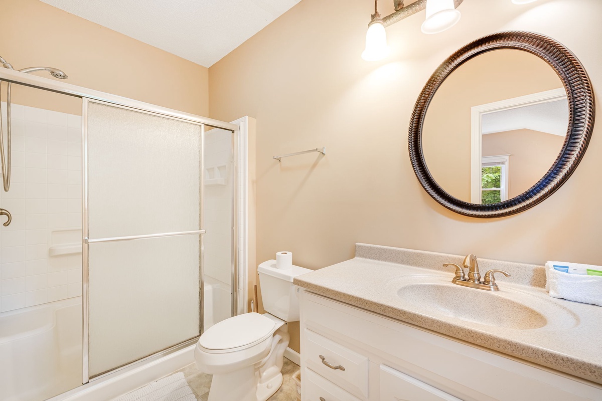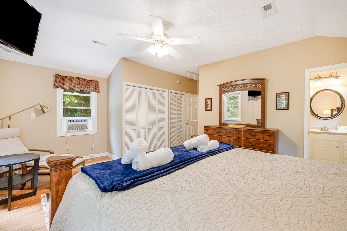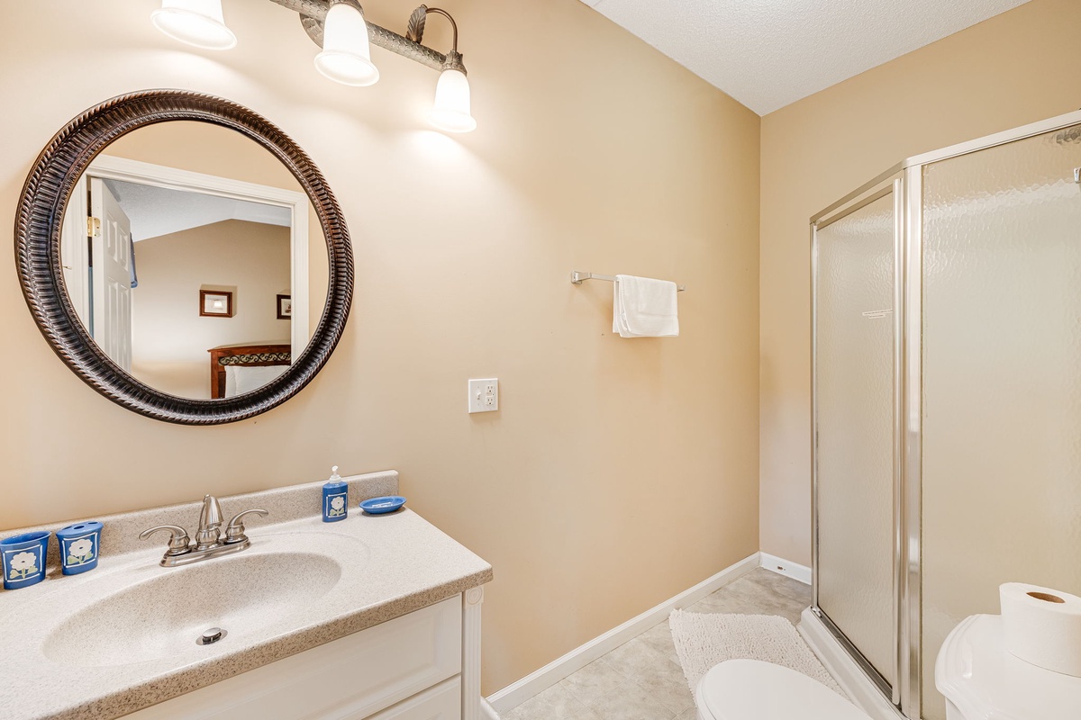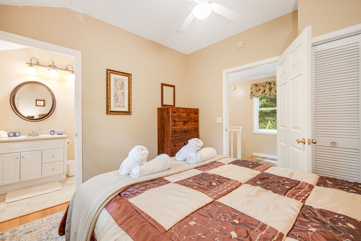 • Upper Level: Main Suite/Bedroom One - 1 King Bed, attached Full Bath with Walk-in Shower; Main Suite/Bedroom Two - 1 Queen Bed, attached Full Bath with Walk-in Shower